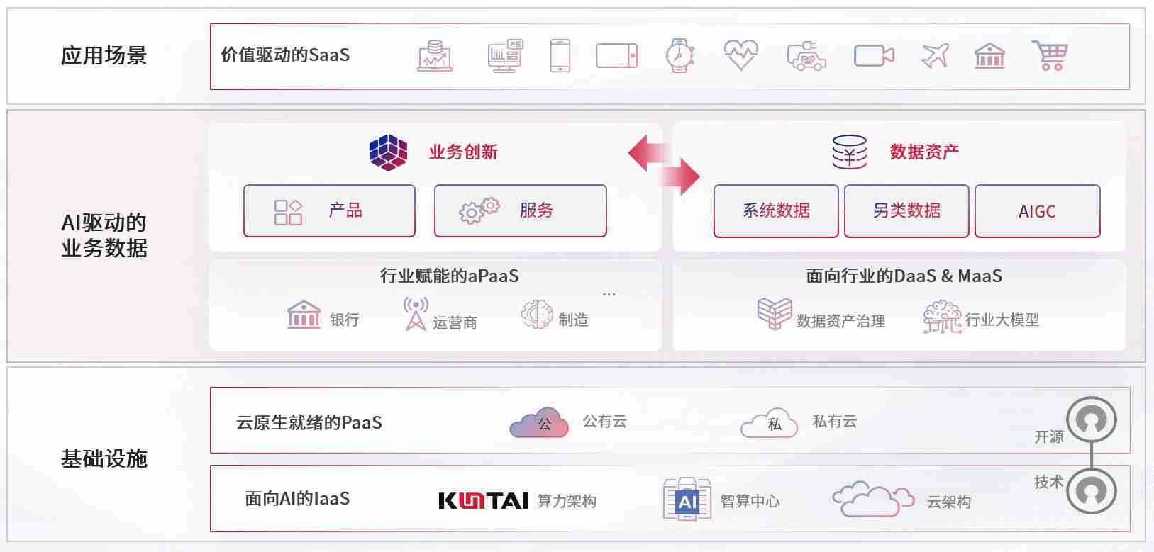 数字时代,,,,围绕企业数字化转型的关键要素,,,,kdpay数码开创性的提出数云融合战略和技术体系框架,,,,着力在云原生、、、数字原生、、、、AI原生和信创产业上架构产品和服务能力,,,,为处在不同数字化转型阶段的快消零售、、、、汽车、、、、金融、、、医疗、、政企、、、教育、、运营商等行业客户提供泛在的敏捷IT能力和融合的数据驱动能力,,,构建跨界融合创新的数字业务场景和新业务模式,,,,助力企业级客户建立面向未来的核心能力和竞争优势,,,,全面推动社会的数字化、、、智能化转型升级。。